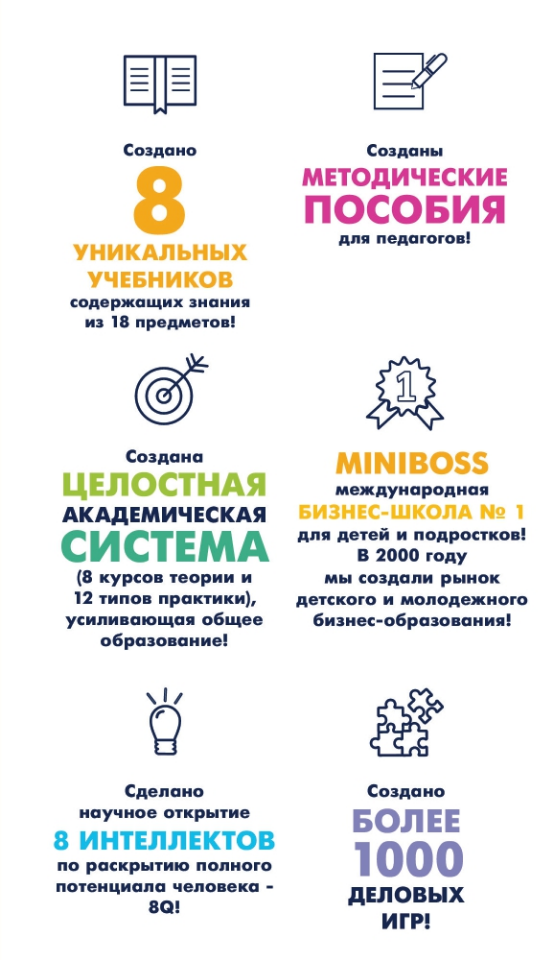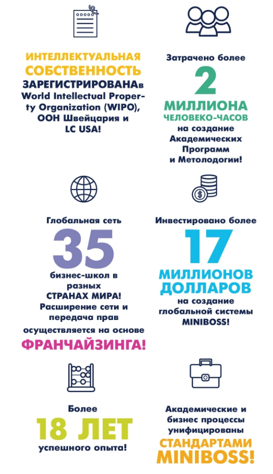 Международная образовательная сеть MINIBOSS BUSINESS SCHOOL - это бренд №1 в сфере бизнес-образования для детей и подростков. В 2000 мы создали рынок детского-бизнес образования.