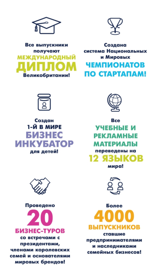 До 2% населения имеет врожденные навыки к предпринимательству. У 98% населения эти навыки можно развить. С 6 до 9 лет закладываются поведенческие основы личности (характер). Для ГАРАНТИИ результативности обучения мы рекомендуем начинать его именно с 6 лет!